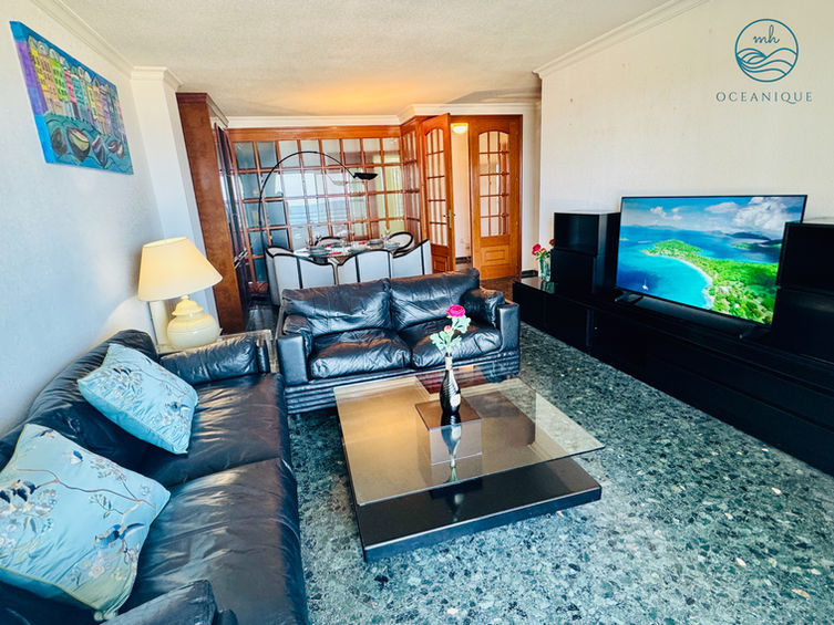 * Balcón panorámico con vistas al mar: tanto el salón como el dormitorio principal